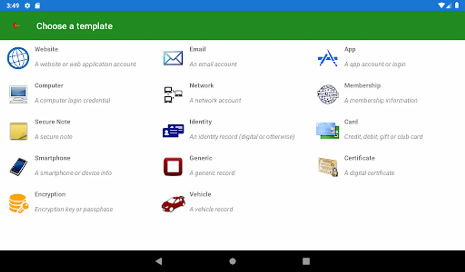 -A secure vault that is ALWAYS holistically encrypted using AES256. This means ALL metadata including tags, icons, images and record management info are also encrypted in the same way as your sensitive records to ensure no leakage of information of any kind.