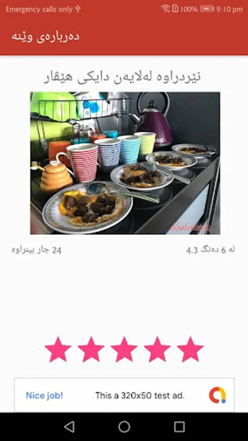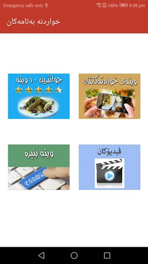 ئهم ئهپه له ١١٠ جۆر خواردن پێكهاتوه كه له ١٠ بهش كۆكراونهتهوه. زۆربهی خواردنهكان خواردنی كوردین و به شێوهیهكی ئاسان و ساده باس كراون.