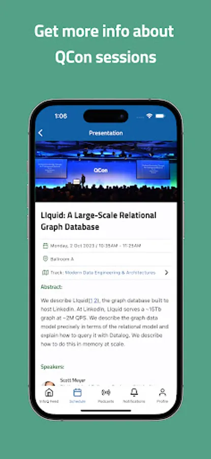 InfoQCon app is specifically created for QCon attendees so they can easily browse the conference schedule, get important information about the event, receive notifications, build their custom schedule, vote for sessions they attended, read InfoQ news and articles. Only QCon participants can benefit of using this app.