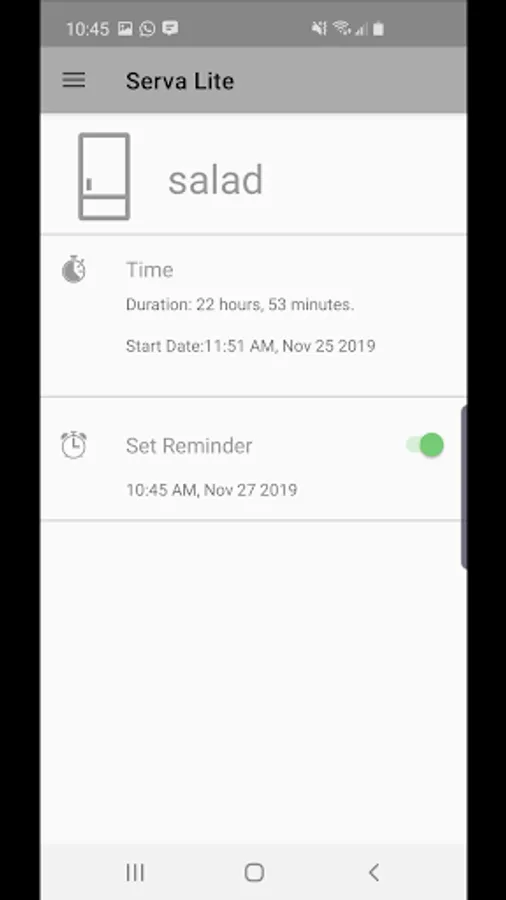 Set reminders of the food items you store and Serva will notify you when the reminder date and time have passed.