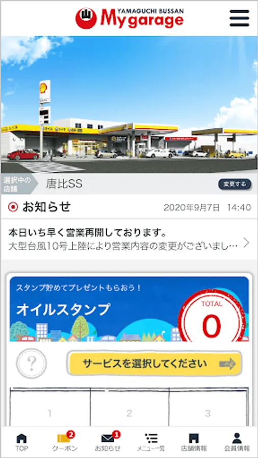 Our app "Yamaguchi Bussan Mygarage" collects stamps every time you perform car wash, coating, oil change, etc., and if you save a fixed number of stamps, you can exchange it for a great coupon, it is a great deal to have fun and enjoy It is an application. In addition, you can easily make reservations for car washing and coating, manage the maintenance of your car, and distribute discount coupons and discount information for various menus that can be used at the registered stores.