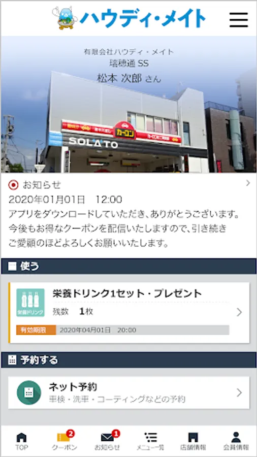 Our official app "Howdy Mate" allows you to easily make reservations for car wash and coating, manage maintenance of your car, and distribute discount coupons and discount information for various menus that can be used at our shop. increase.