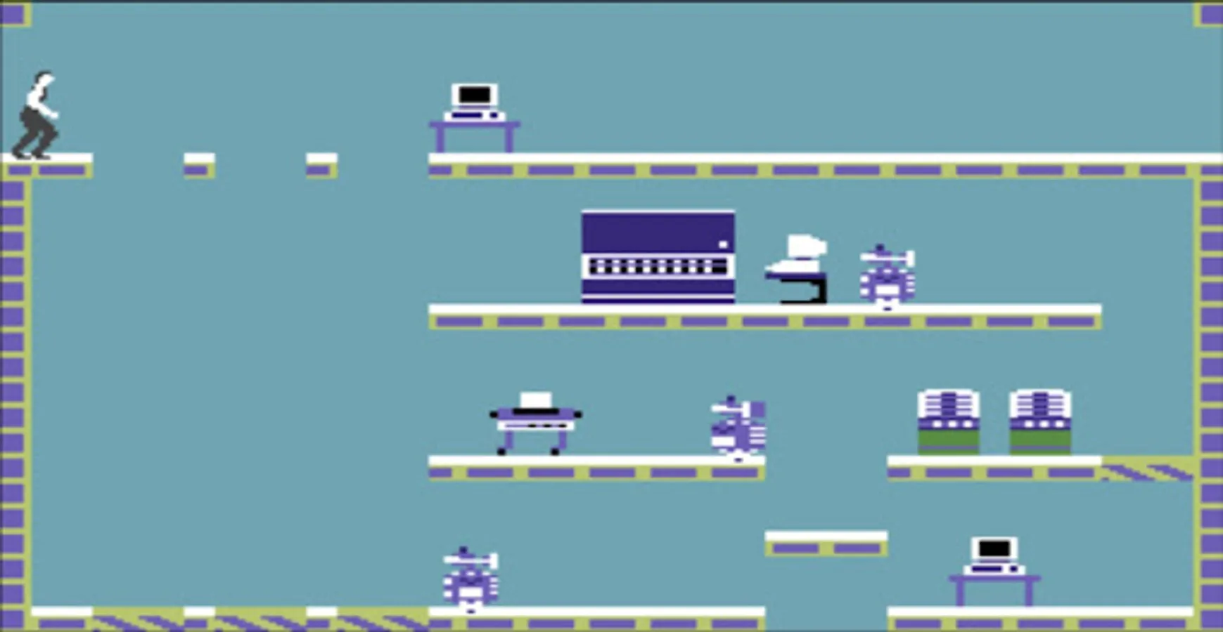 You take the role of a secret agent who must stop an evil genius, Professor Elvin Atombender, who is believed to be tampering with national security computers.