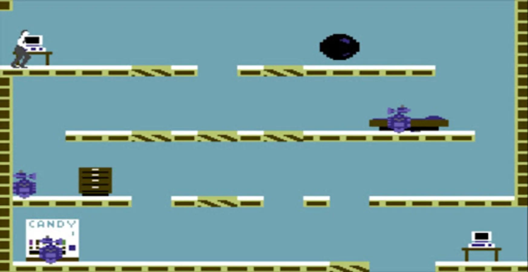 The player races against the clock to reassemble and decrypt the password to Atombender's control room while avoiding deadly robots.