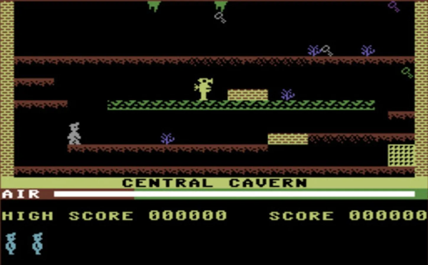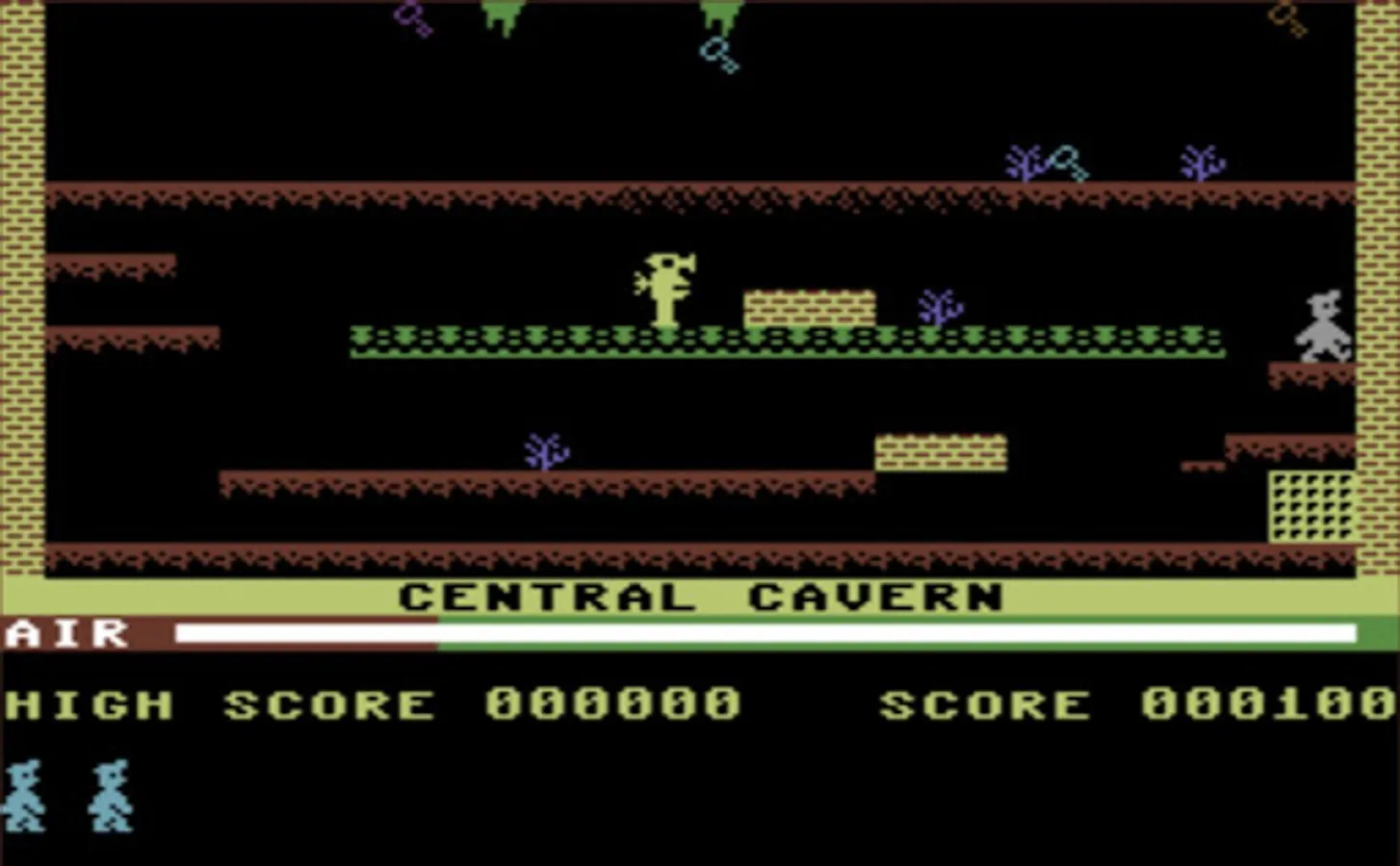 To move to the next chamber, you must collect all the flashing keys while avoiding nasties like POISONOUS PANSIES and SPIDERS and worst of all, MANIC MINING ROBOTS. However, if you fall heavily three times the game will end.