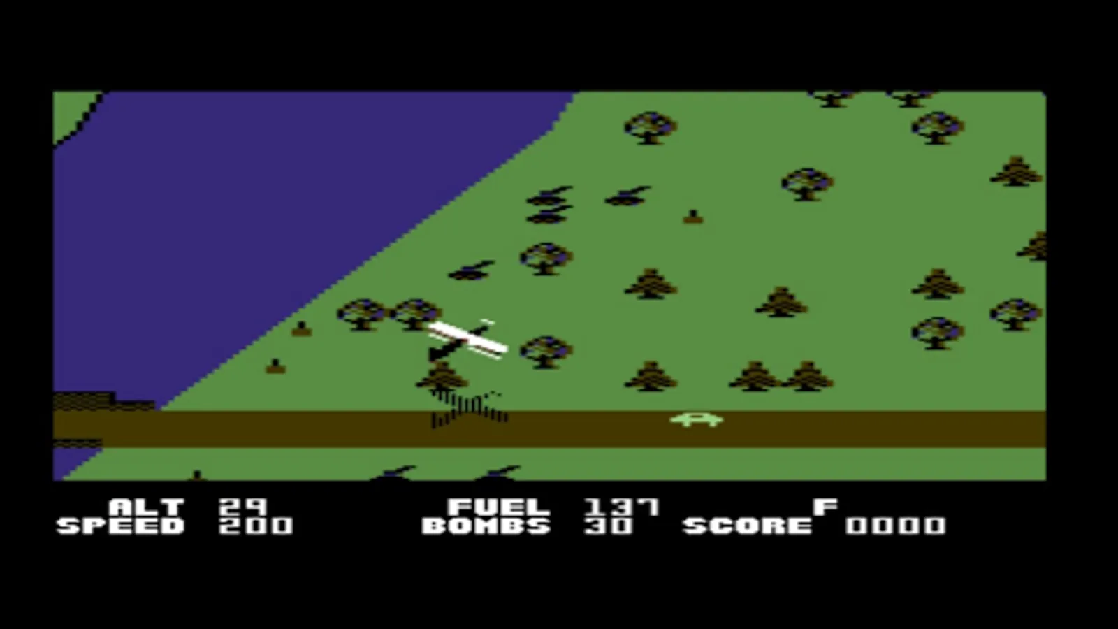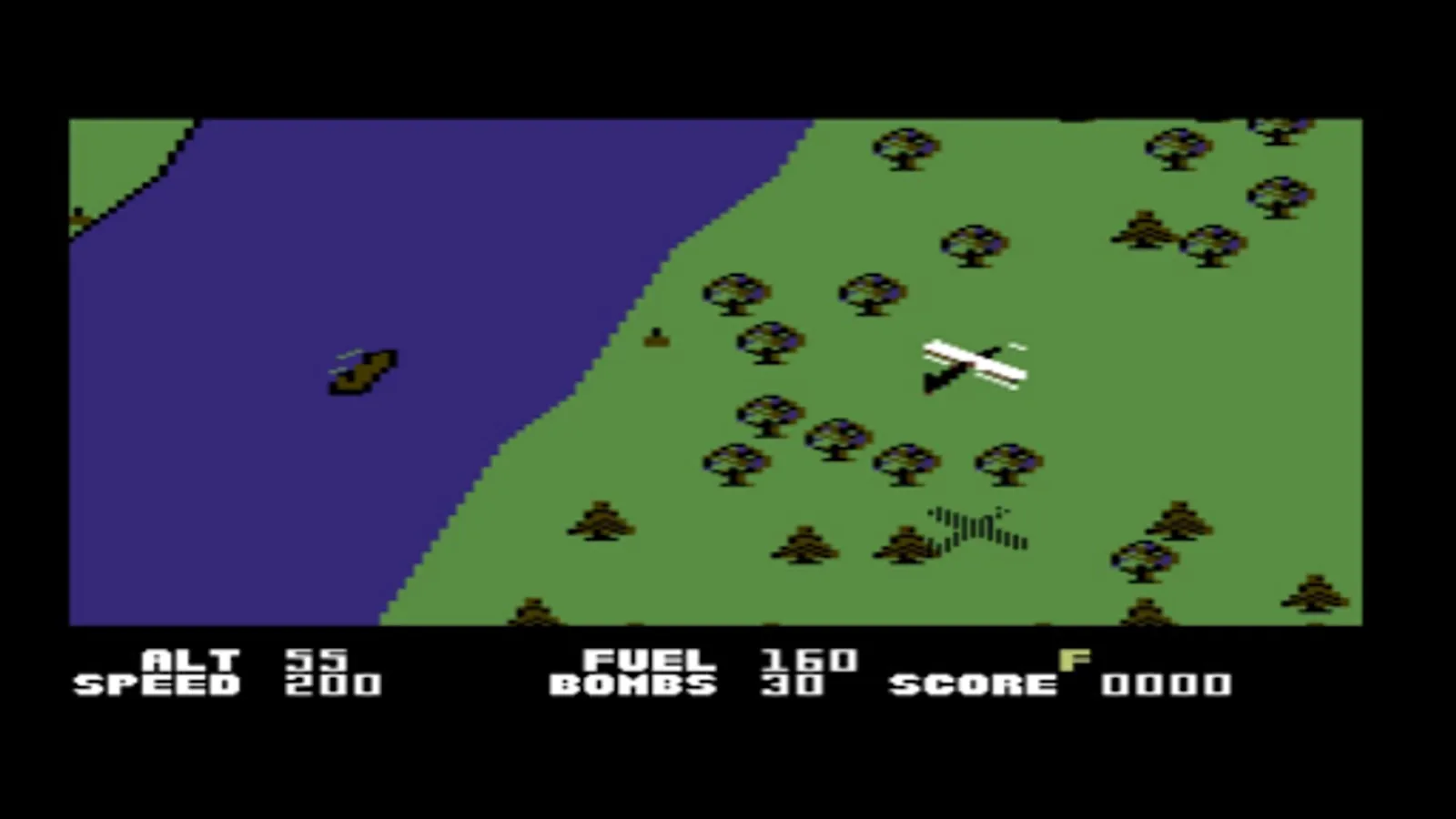 Blue Max is set in World War I. The player is the pilot of a double-decker and can destroy enemy planes, tanks, and flak. It can also destroy buildings, bridges, or ships. The player can attack with machine gun fire, or with bombs.