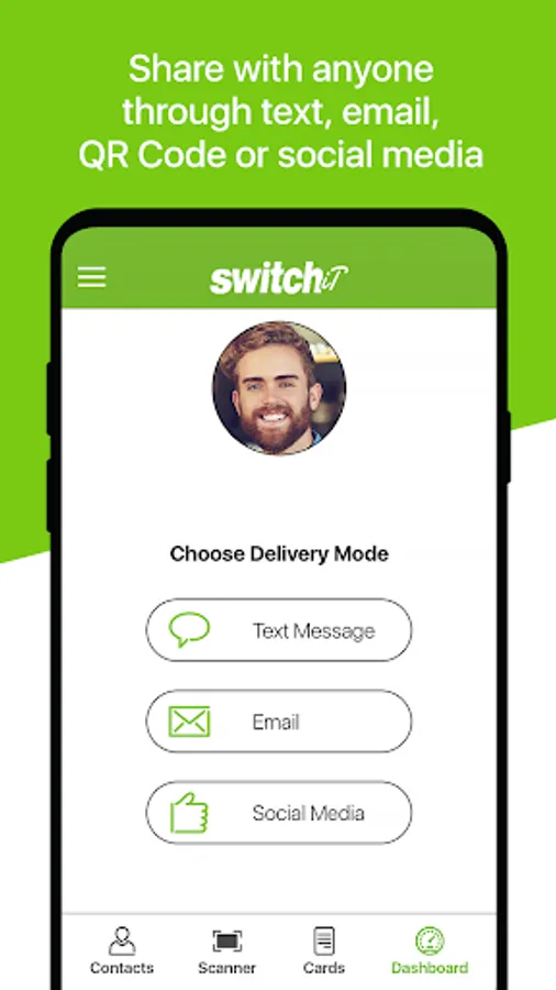• You can share and send your digital business card with anyone, even if they don’t have the Switchit app.