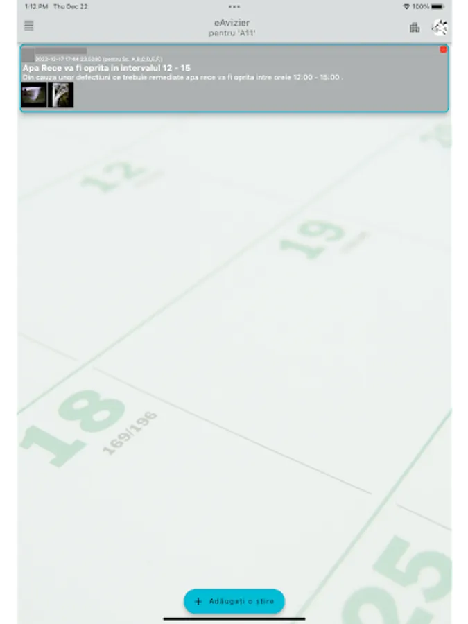 You can use this application if you are a tenant or administrator of block A11. The application helps you, as a tenant, to receive information of general interest about the events concerning the A11 block.