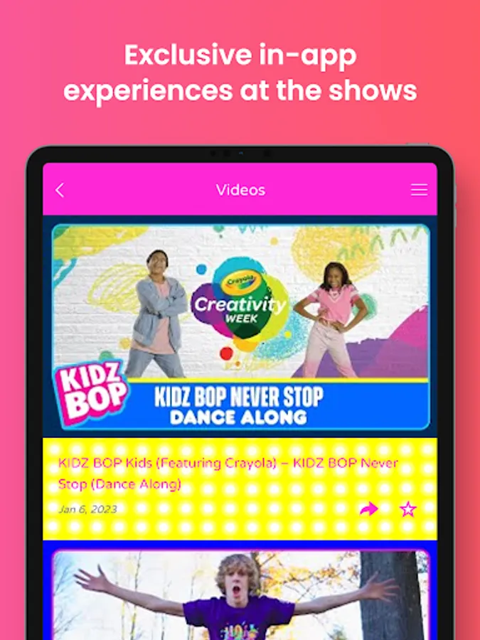 Parents, get ready for the all-new 2023 KIDZ BOP Never Stop Live – the ultimate family concert experience – with the KIDZ BOP Live app! The KIDZ BOP Live app is a resource for any parent taking their family to a KIDZ BOP show.