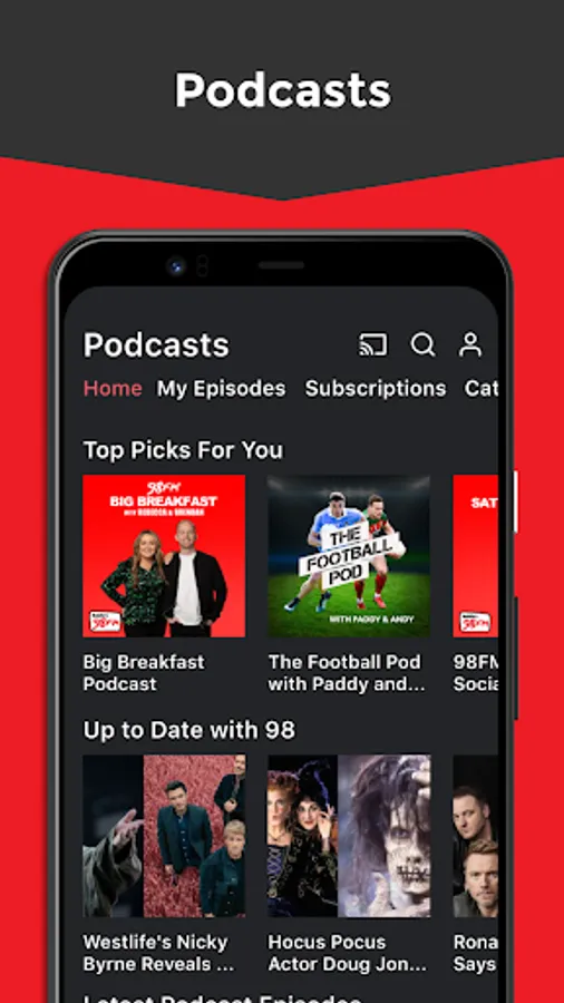 ・Podcasts – easily find and subscribe to the latest podcast episodes and download directly on your phone