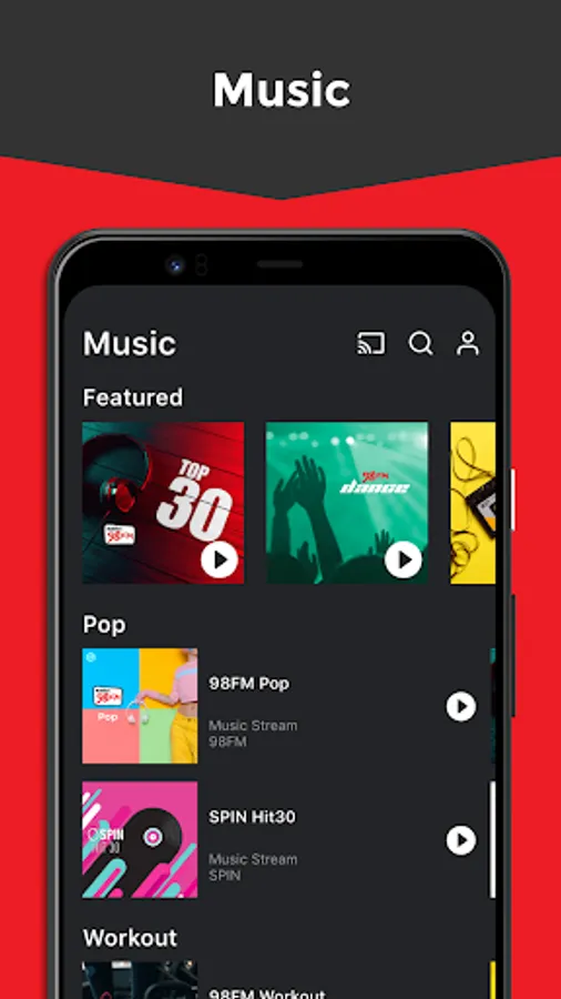 ・Play music streams - ready-made playlists curated by music experts that suits your mood or occasion