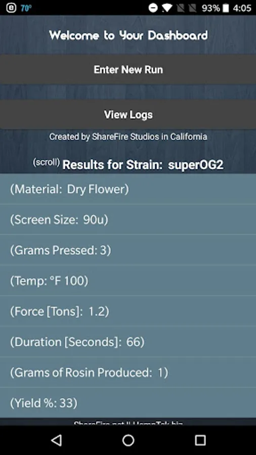 Medical/Legal Cannabis Rosin Press Measurement & Result tracking. Track your work and achieve your goals!!