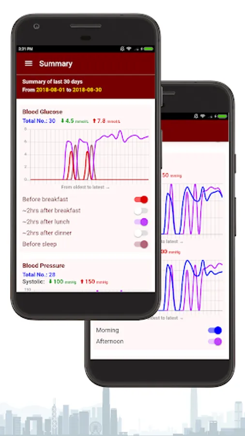Blood Glucose BG helps keeping track of your blood glucose level. User can record date, time, glucose level, event and notes for each record. The recorded glucose levels of the last 30 days will also be shown using line chart on the summary page. Non-registered user can try this app with a limitation of 7 blood glucose records. To unlock this limitation, user can register with a mobile phone number - Registration is free.