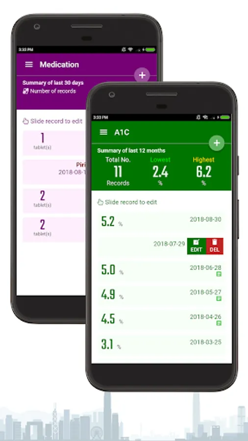 Registered user can become Premium user with a yearly subscription (US$3.99). Premium user can use other logging functions, such as Blood Pressure, Body Weight, HbA1c and Medication. Besides, premium user can also generate online report with records and charts, and a temporary link for viewing on the Internet.