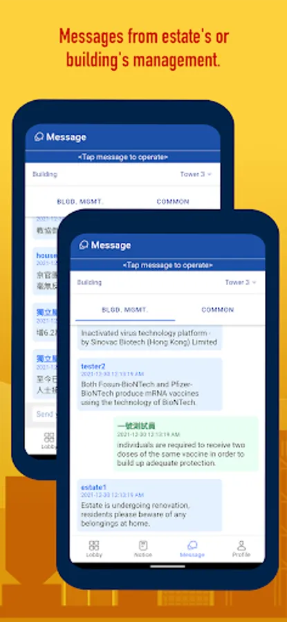 - Post and read building's common messages (if subscribed)