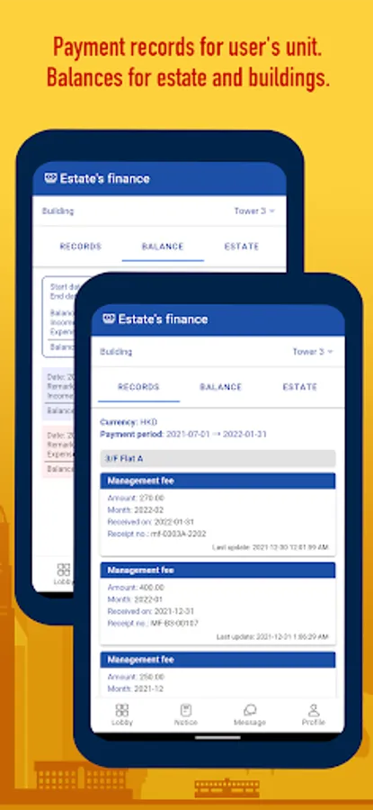 - View unit related payment records, estate and building's balance