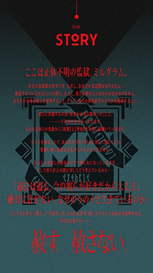The fate of the story will change depending on the judgment of "forgive" and "not forgive" by the audience vote.