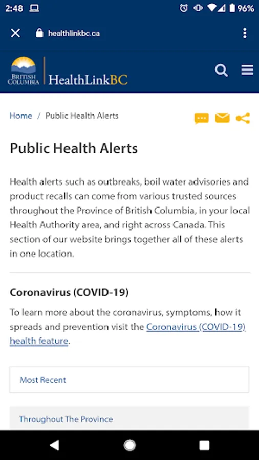 • Visit the HealthLinkBC website within the app or within your mobile browser