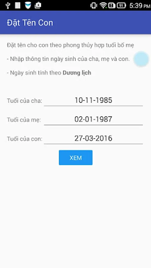 - Choose the date of the father, mother and child