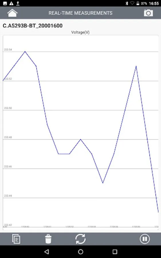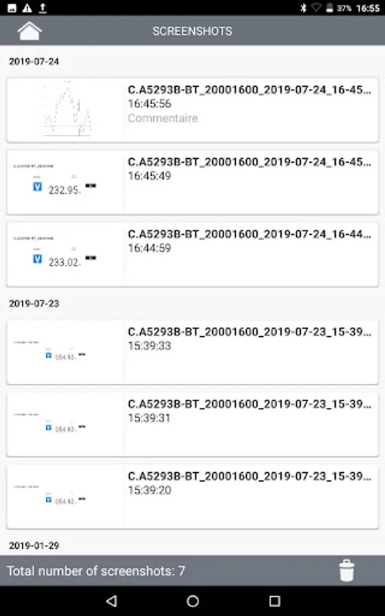 4- Display snapshots: opens a screen for displaying screenshots (snapshots of real-time measurement text-format screens or graphical representations) made using the Android device.