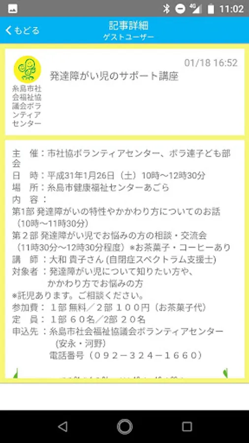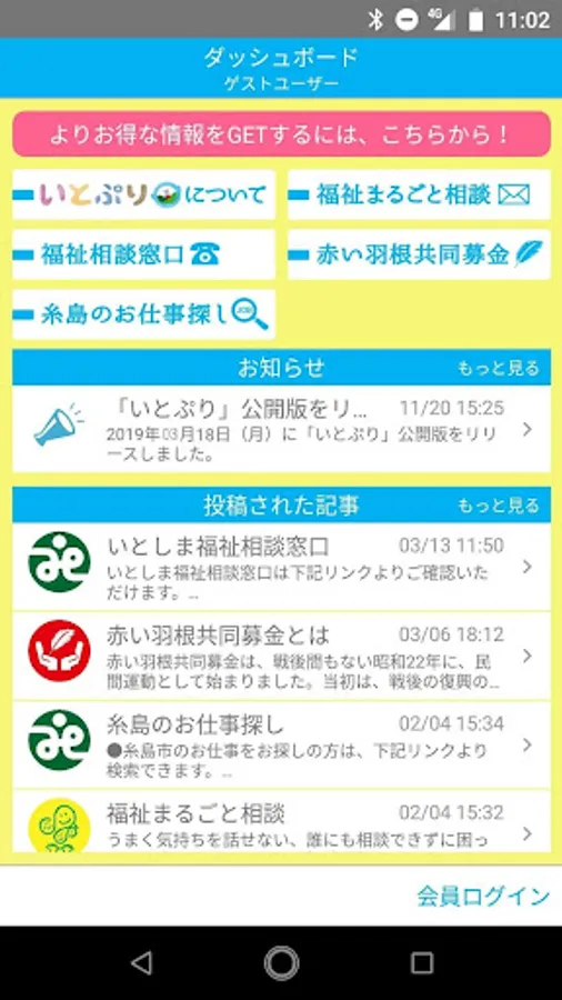 It is an application that quickly sends information on welfare created by the Itoshima City Social Welfare Council.