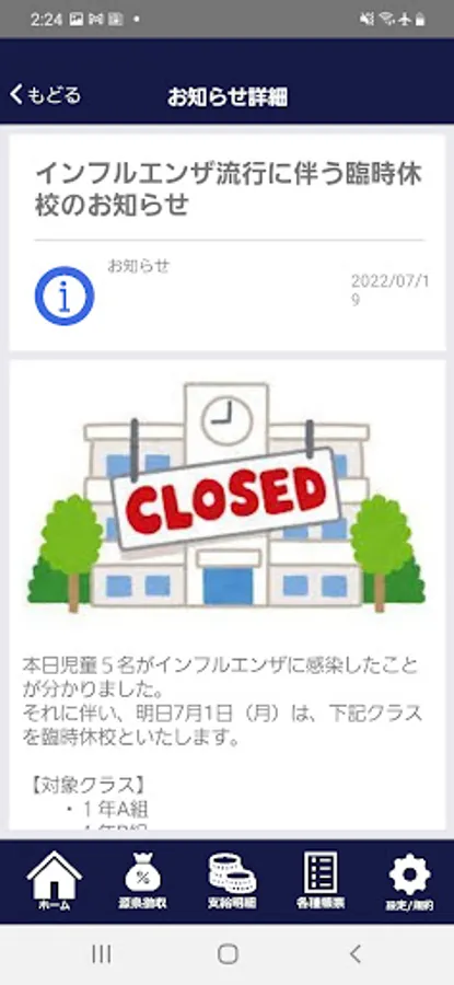 In addition to the salary inquiry function and notifications of school events, etc., we will send various information.