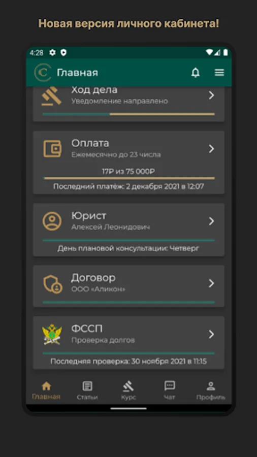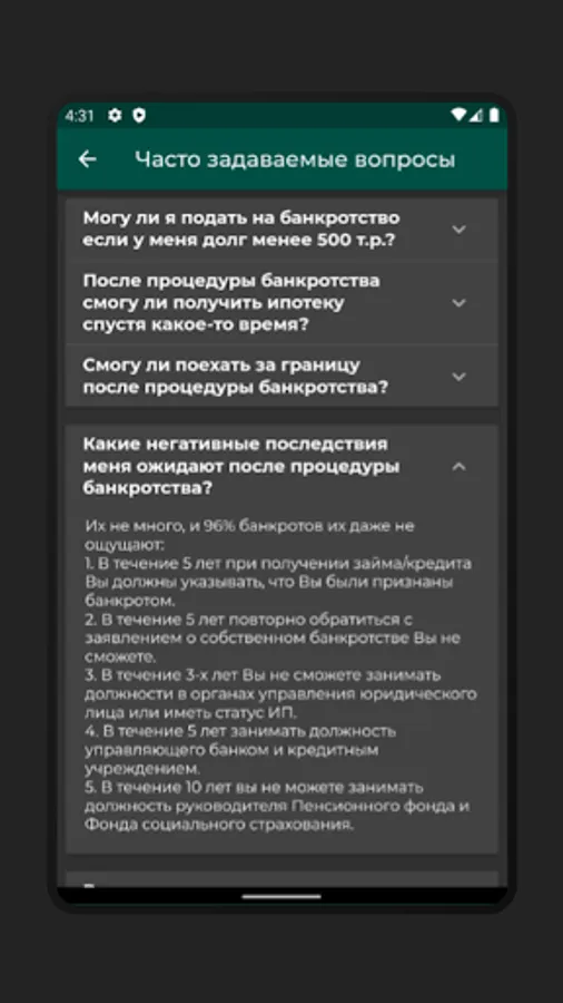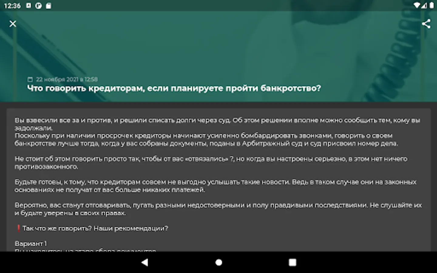 - Free legal advice on the possibility of debt cancellation right in your device;