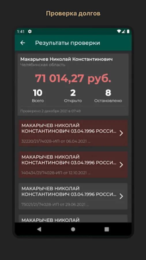 - Search for debts in the FSSP. You may not know that your creditor has already sued you, or you may know only part of the enforcement proceedings. Find out online!