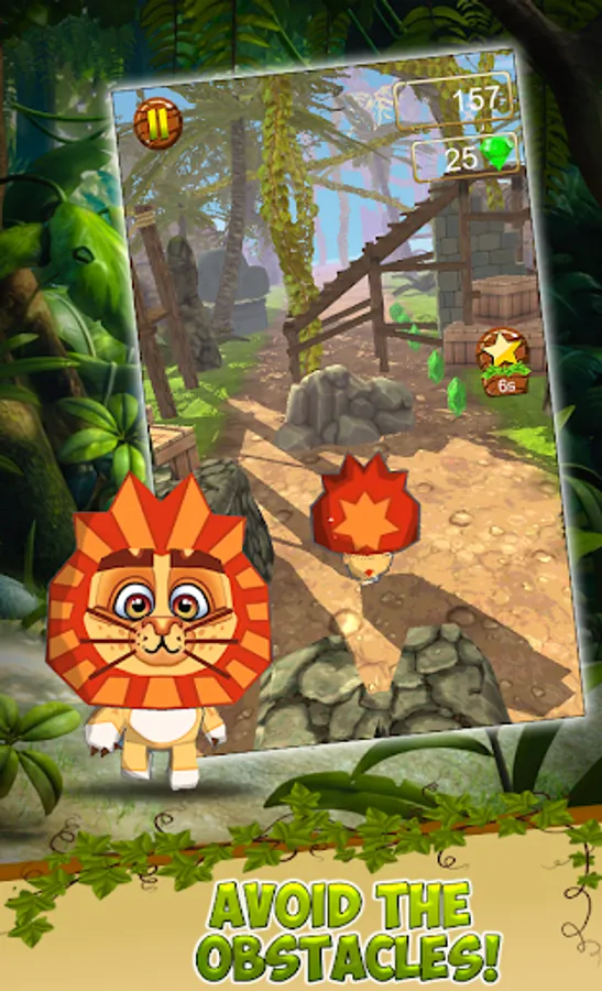 Find an enormous treasure and go on the journey of your life with legendaryand wild jungle animals like lion, gorilla, tigre and rhino ! Help them to find riches in a mysterious temple! The jungle is a dangerous place, it’s up to you to make it back to safety and survive the dangerous obstacles in this exciting temple run game! Figure out how to trick the forest and use your brain to find the treasure!