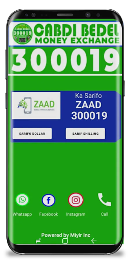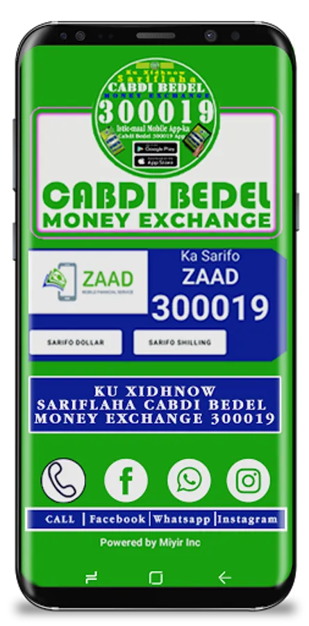 Sariflaha Cabdi Bedel Money Exchange waa adeeg Mobile App kuu sahlaya in aad si fudud u sarifato lacagtaadda. Ka Sarifo Cabdi Bedel Money Exchange 300019, Doller iyo Shilling ba adiga oo isticmaalaya Numberka Sarifka Zaadka oo ah 300019.