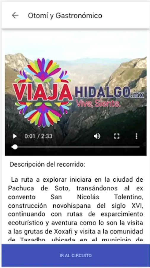 On the platform you can view original promotional material corresponding to each of the tourist offers offered through tourist circuits developed in the regions of Tula - Tepeji, Pachuca de Soto - Mineral del Monte, Ixmiquilpan - El Cardonal, Actopan and Tepeapulco, of according to tourist attractions that each region wishes to promote.