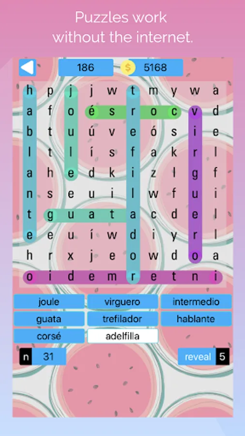 busca palabras: sopa de letras espanol is an excellent game for brainiacs and crossword addicts. If you like to relax and unwind with a crossword puzzle, sopa de letras, board games, or solitaire, you'll love busca palabras!