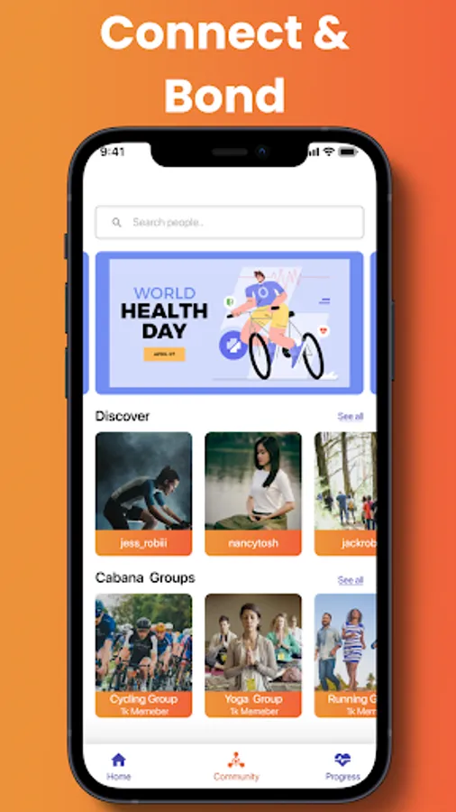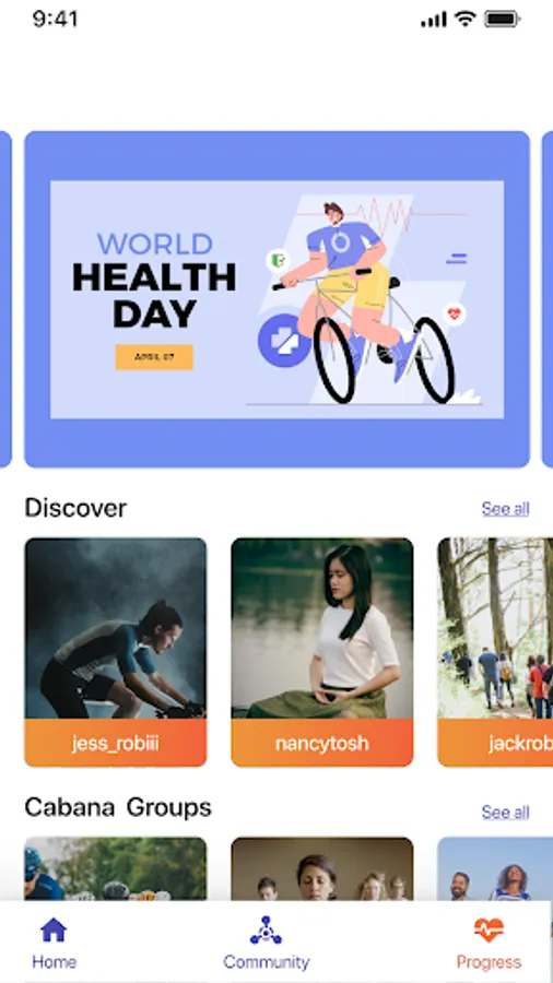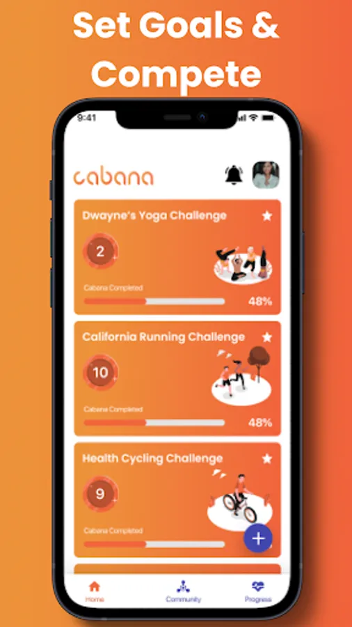 Join- Find your niche and join the fitness community that resonates with you the most. Whether you are a passionate hiker or a slow dog-walker, there is a Cabana aka community for all.