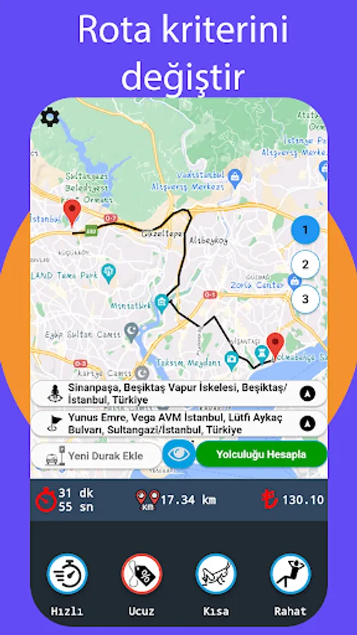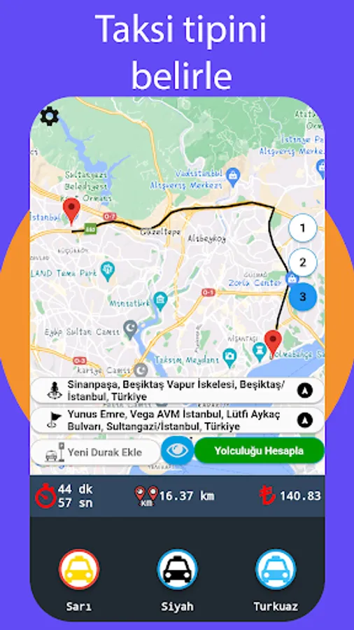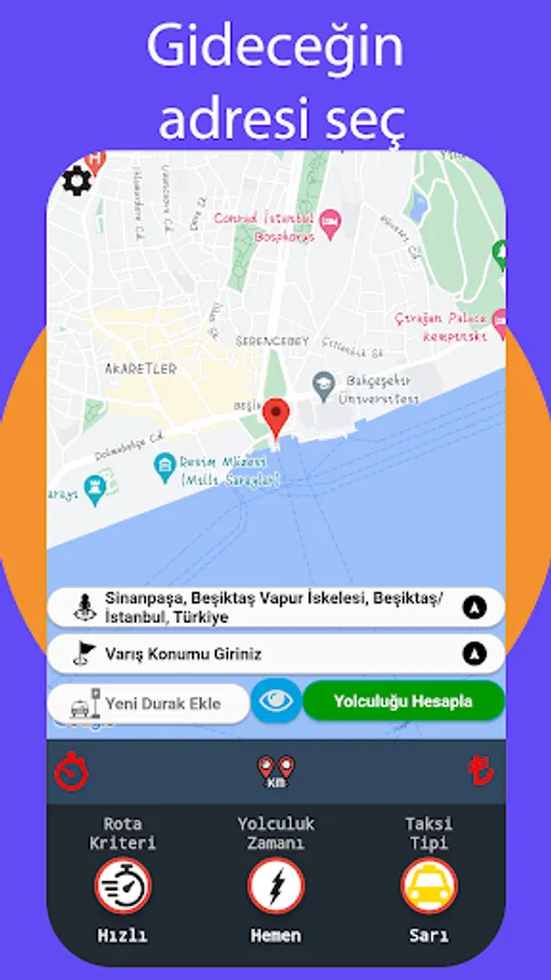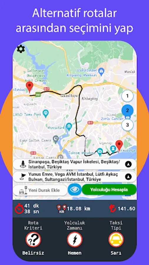 With CabApp, you can calculate route information such as price, distance and duration of your taxi journeys.