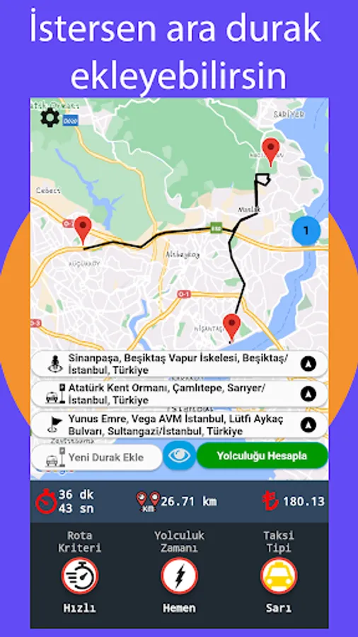 If there are intermediate stops on your journey, you can specify them in the application and see the price, distance and time changes.