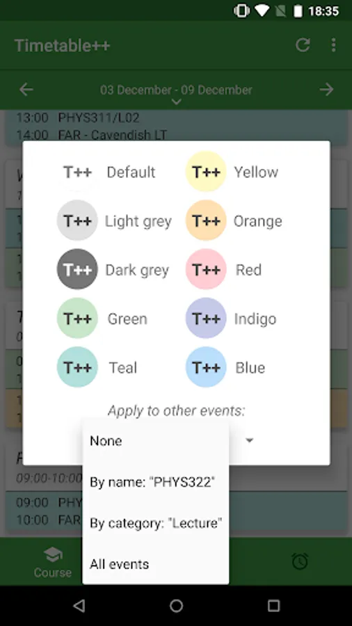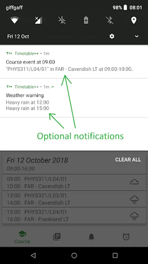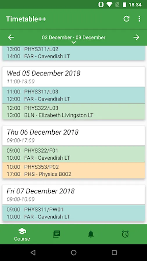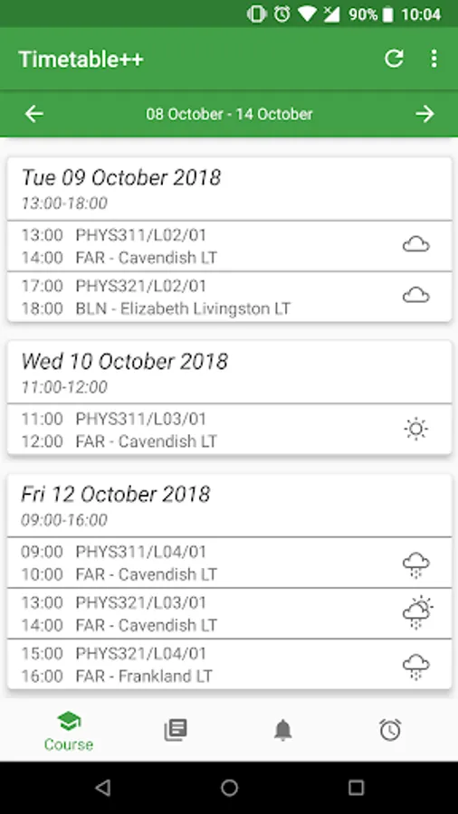 • Shows your coursework deadlines in addition to lectures and exams. (Coursework deadlines may not always be accurate, depending on your lecturer.)