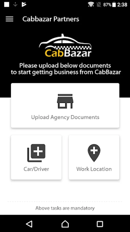 CabBazar (https://cabbazar.com/) is leading taxi aggregator in India. CabBazar Partners app enables travel agencies including taxi service providers, individual taxi owners to become partner with CabBazar for providing taxi service to CabBazar's customers.