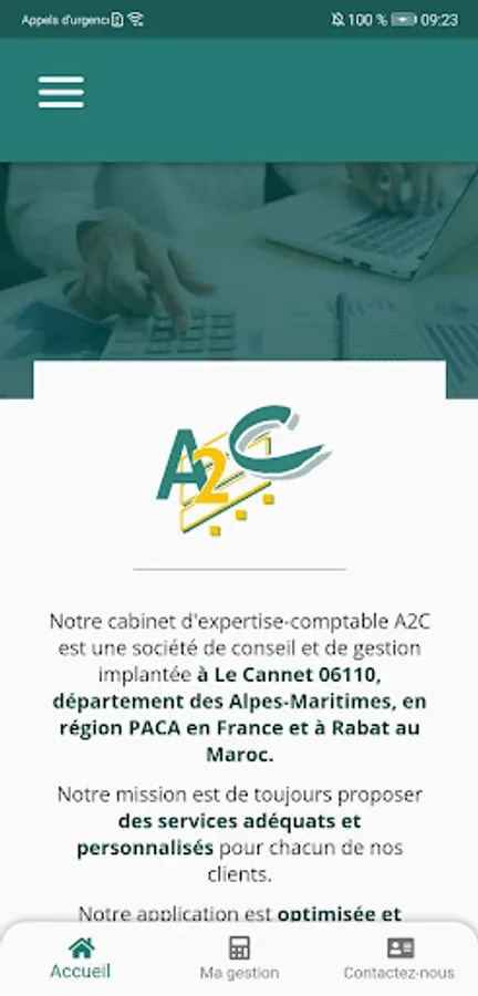 This is your online accounting firm. It is a motivated professional team at your side to help you in all stages of the life of your company, from creation to transmission, from management to IT without forgetting the right whatever its form (company, individual, association). We are here to accompany you and guide you in an economic world where the rules are constantly changing.