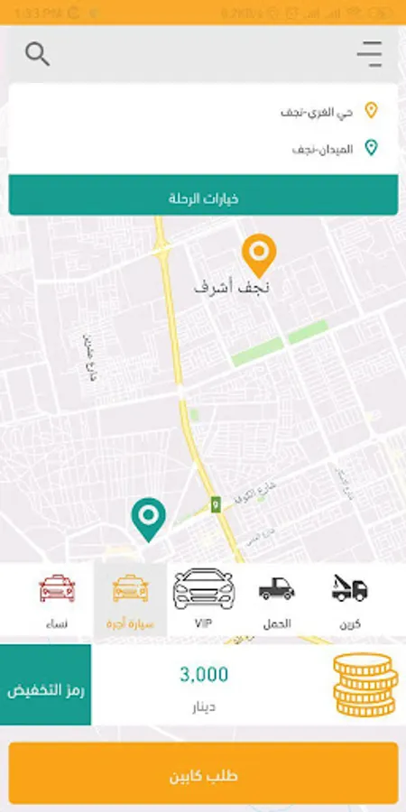 كابين هو تطبيق لخدمات النقل والتوصيل وحجز السيارات في العراق