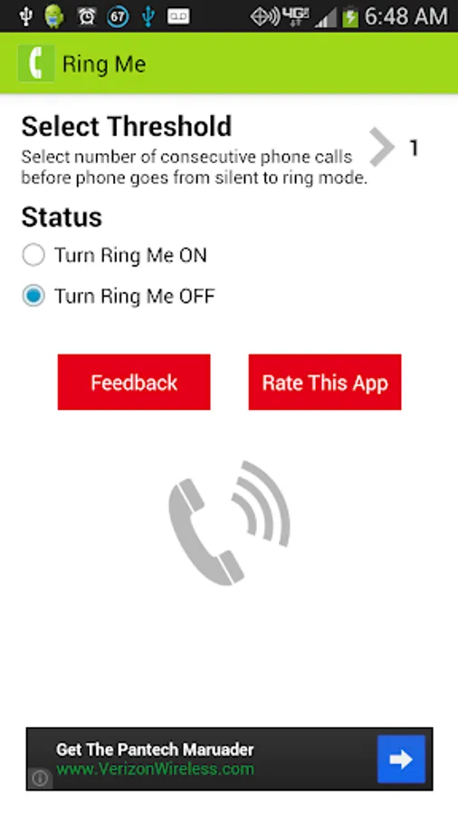 Misplace your phone often? Can't ring yourself because it was in silent mode? This small and simple app will take you out of silent mode if the same person calls you 2 times within 1 minute period. Useful when there is a family emergency when someone is trying to reach you.