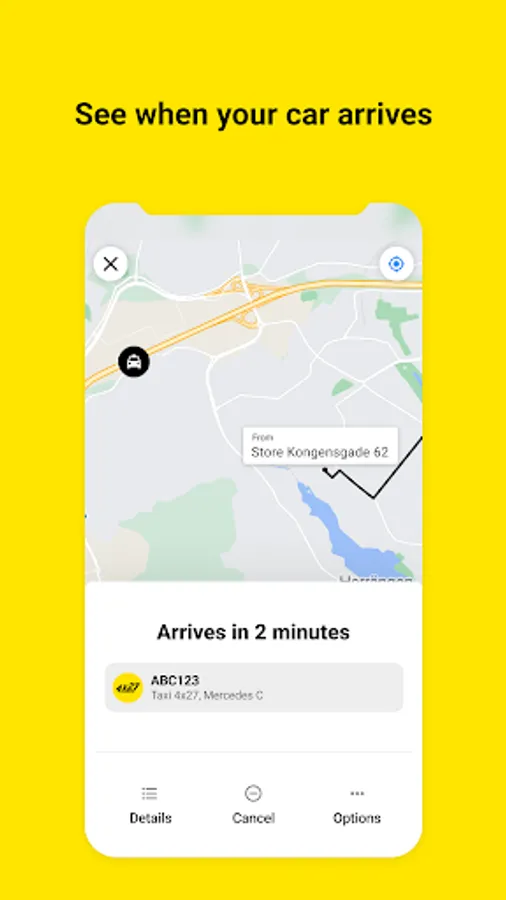 - Follow you taxi on the map while on its way to you and during the trip. We will notify when the taxi is on its way and when it has arrived and the address.