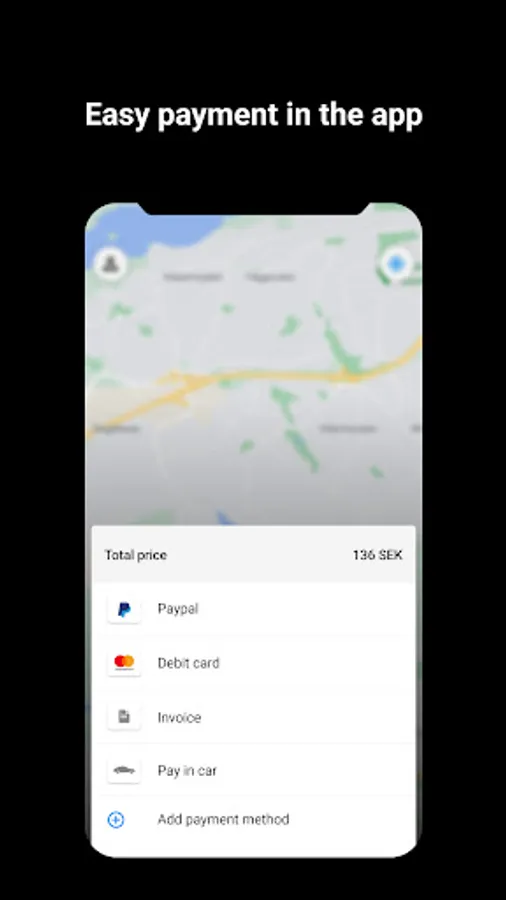 - You can easily select different payment options (in car, CreditCard or Paypal)