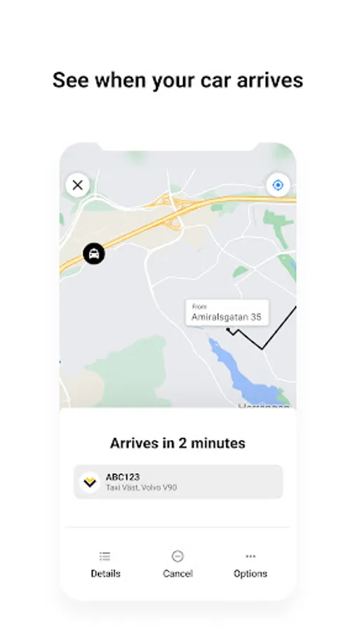Then when the car is on its way, we send you a message along with its estimated arrival time at your door. You can also follow your taxi on an active map. The app gives you the taxi’s ID number so that you can easily track the taxi assigned to you. The ID number can also be found on the car’s roof light.