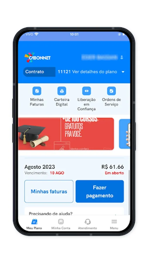 We evolved! And you Cabonnet subscriber is part of that. Use the new application to obtain your invoice data via email or SMS, access to your financial history, release in confidence, simple and direct registration data, payment of slips and recurring billing in the app and much more.