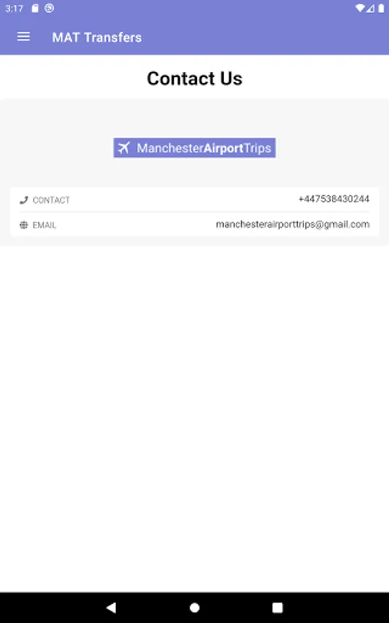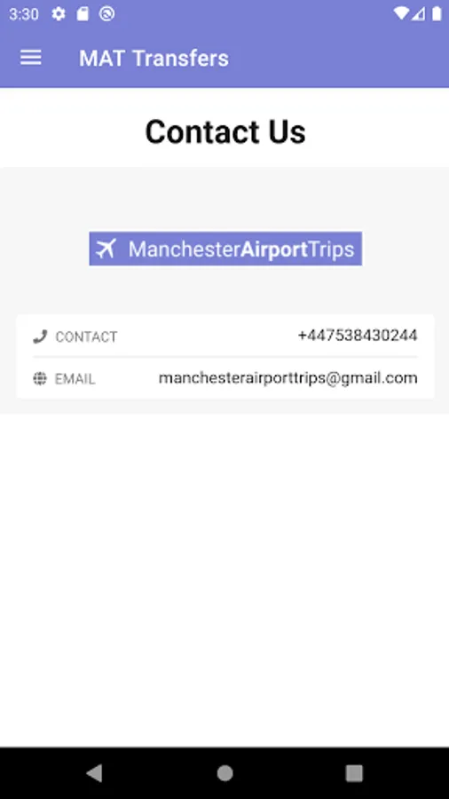 You can always contact our customer service directly from the app or by calling our number +447538430244 if you have questions about MAT Transfers private hire taxi booking app or anything else. We kindly ask you to send feedback to Manchesterairporttrips@gmail.com