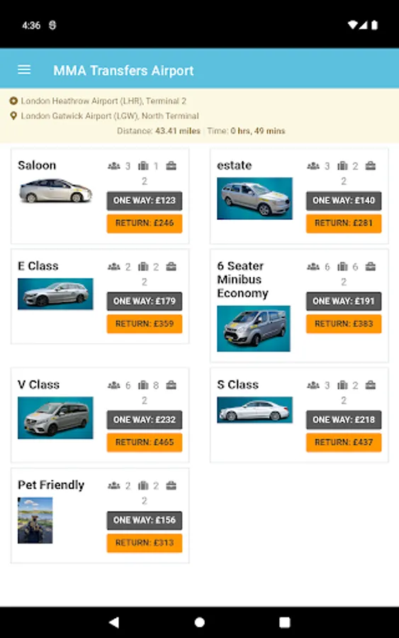 Saloon, Estate, Business/Corporate, MPVs and MPV+(6 Seaters). Our fleet include Mercedes E Class, Minibus, V-Class elwb, Mercedes Vito.