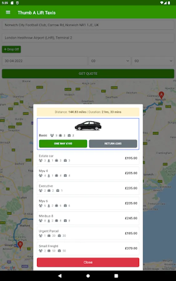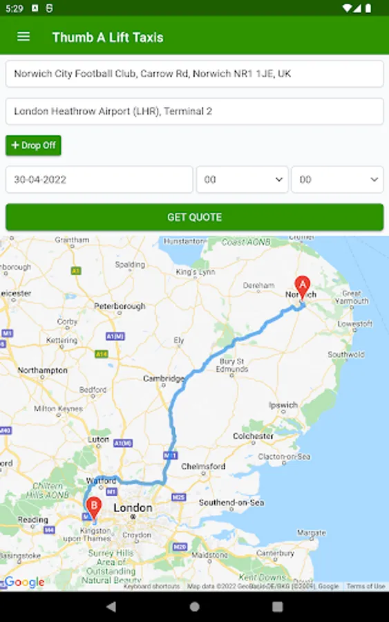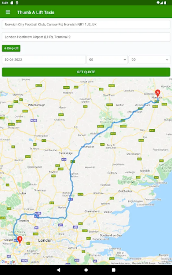 Thumb a Lift Taxis are a Fully Licensed and Insured Norfolk Based TAXI Booking App for Long Distance Taxis for Norfolk & Suffolk.