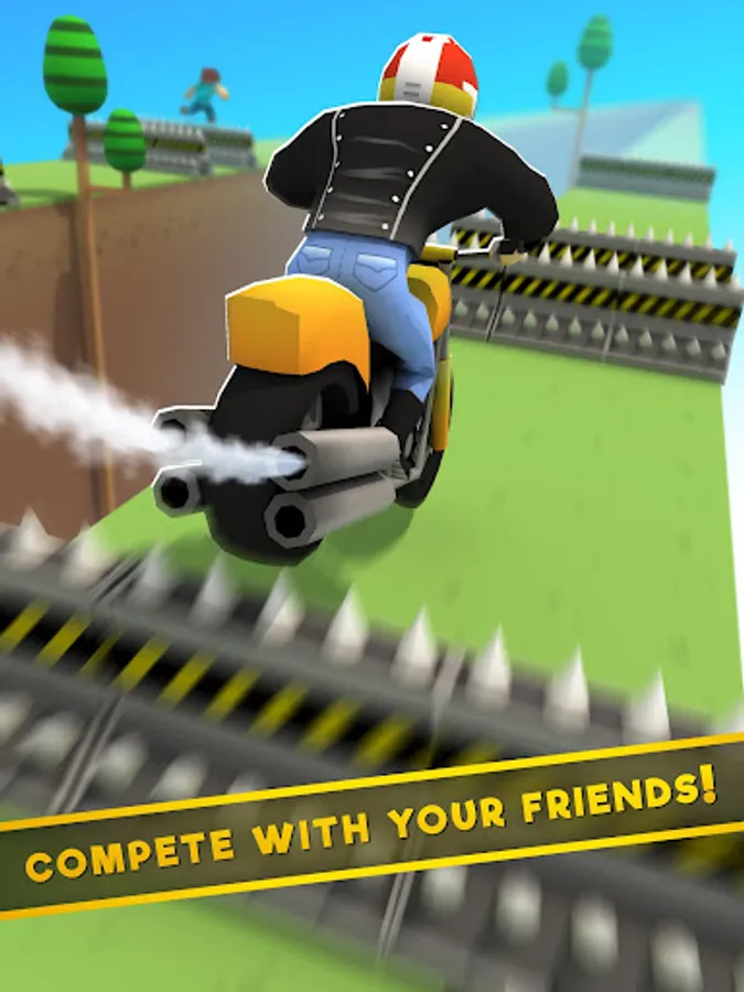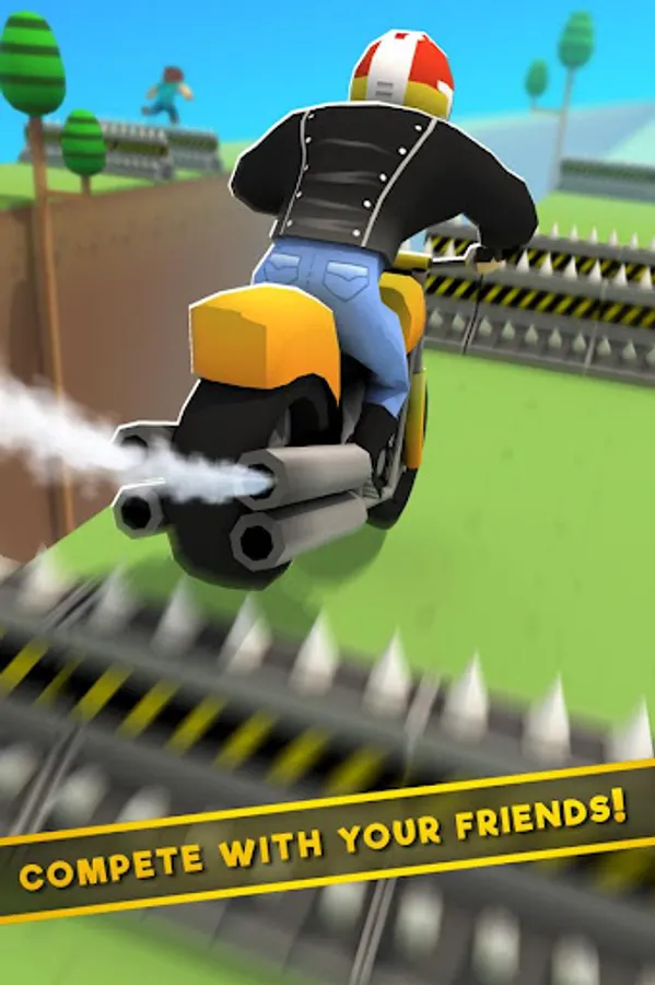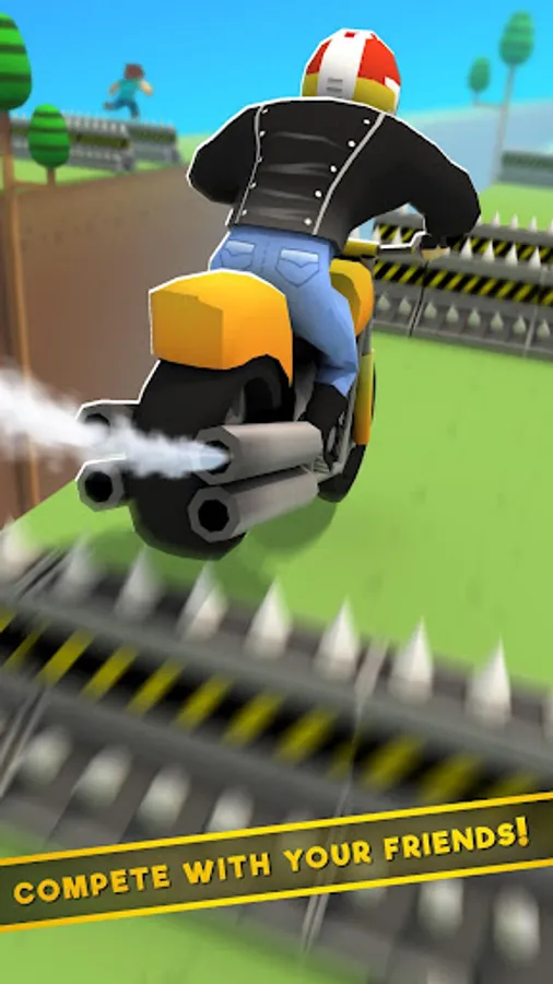 Choose your character and avoid pits and falls racing against motocross bikes, racing cars and cube blocky guys among others impressive characters through different blocks! There's no time to waste. Hit the gas, control the fuel, use the nitro to activate the turbo and perform an amazing jump with your character.