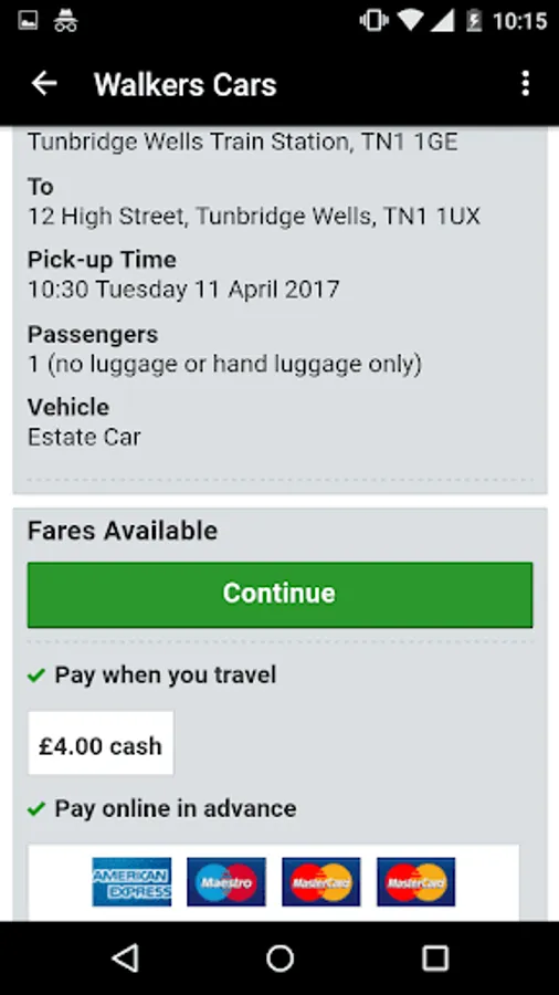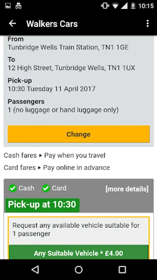 Book with Walkers Cars of Tunbridge Wells quickly and securely with our new mobile app. Cash and card fares available.