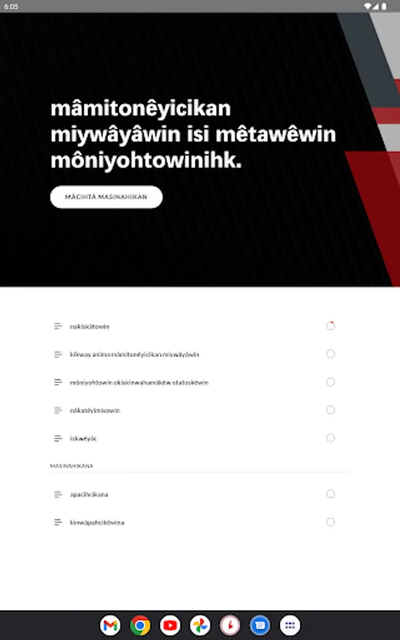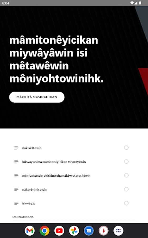 ôma kiskinwahamâkêwin masinahikan osihcikâtêk nîswâyihk isi kanâta wikamik osci mâmitonêyicikan miywâyâwin êkwa môniyohtowin (CCMHS) êkwa kâkî pihtamihk anihi pîkiskwêwina: Arabic, Chinese (kayâs itôtamowin), cîpwîyânêwin, akayâsîmowin, mistikôsîmowin, ayâskîmowin (sâwanohk Baffin), paskwâw nêhiyawêwin, Punjabi, Tagalog, êkwa Farsi.